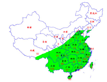 目前全世界已知白蟻2000多種,我國已知476種,我國白蟻分布如下圖所示。由于氣候、植被、物流的迅猛發展及其它多種原因,目前,我國沿海和內陸地帶白蟻危害較為嚴重、特別是家居白蟻的危害日趨嚴重,給人民群眾財產造成直接經濟損失。