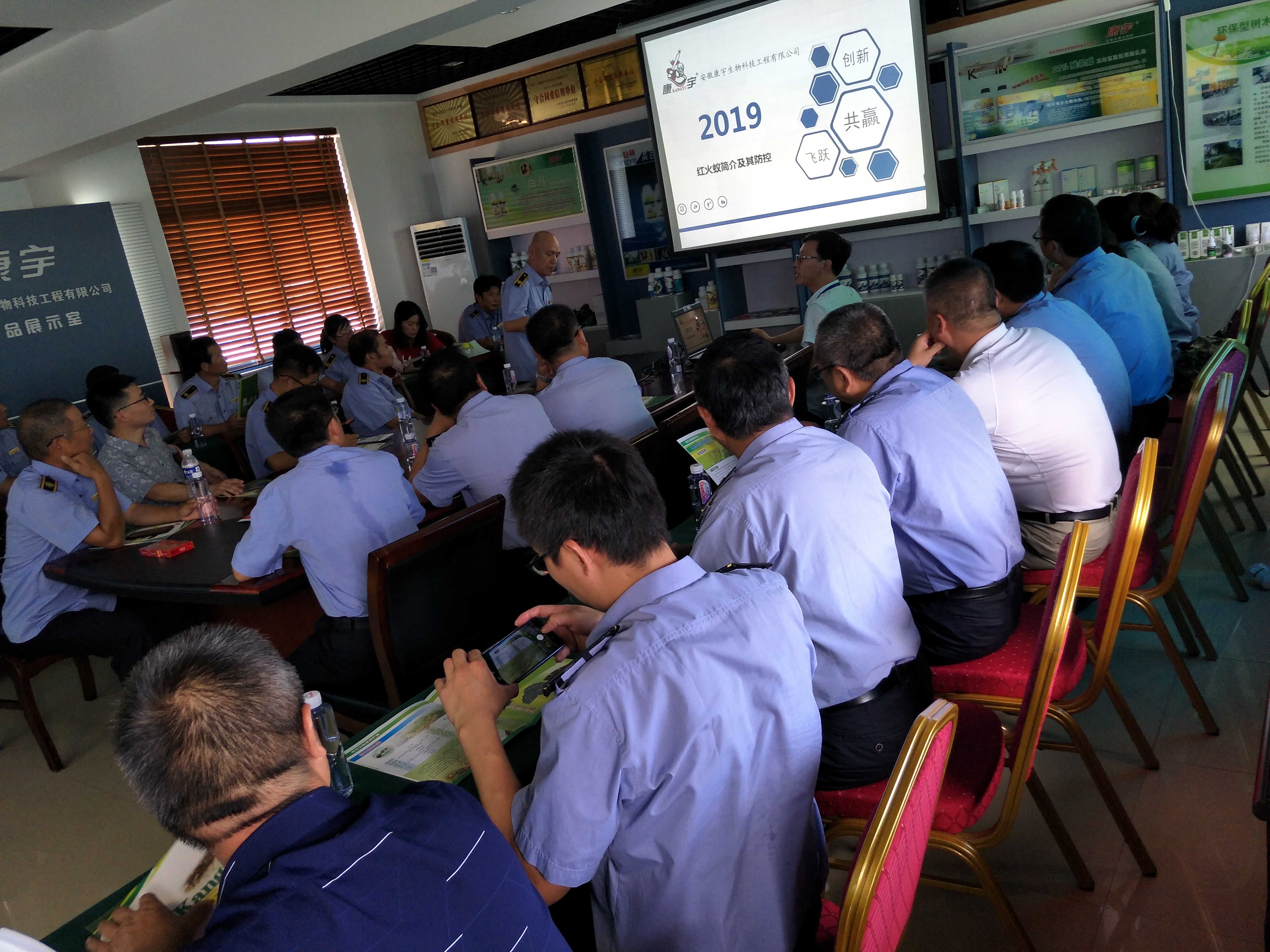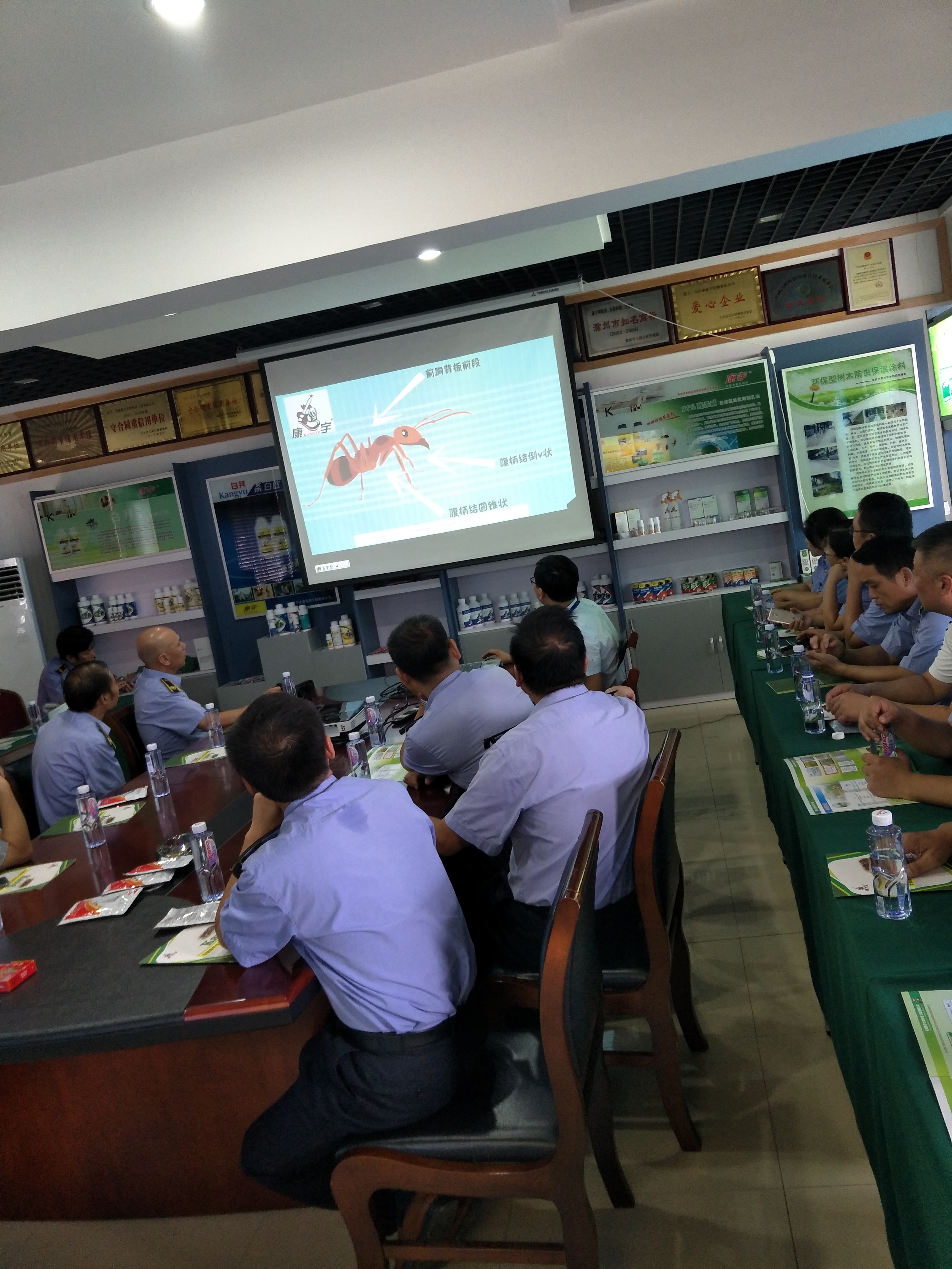 在參觀我公司生產(chǎn)線后,檢疫小組來到我司產(chǎn)品展覽室。我公司技術(shù)部馮泰州工程師向各位領(lǐng)導(dǎo)做有關(guān)紅火蟻專題報告。向各位領(lǐng)導(dǎo)介紹了紅火蟻相關(guān)知識,以及紅火蟻防控產(chǎn)品的特點、作用機理、施用方法等。